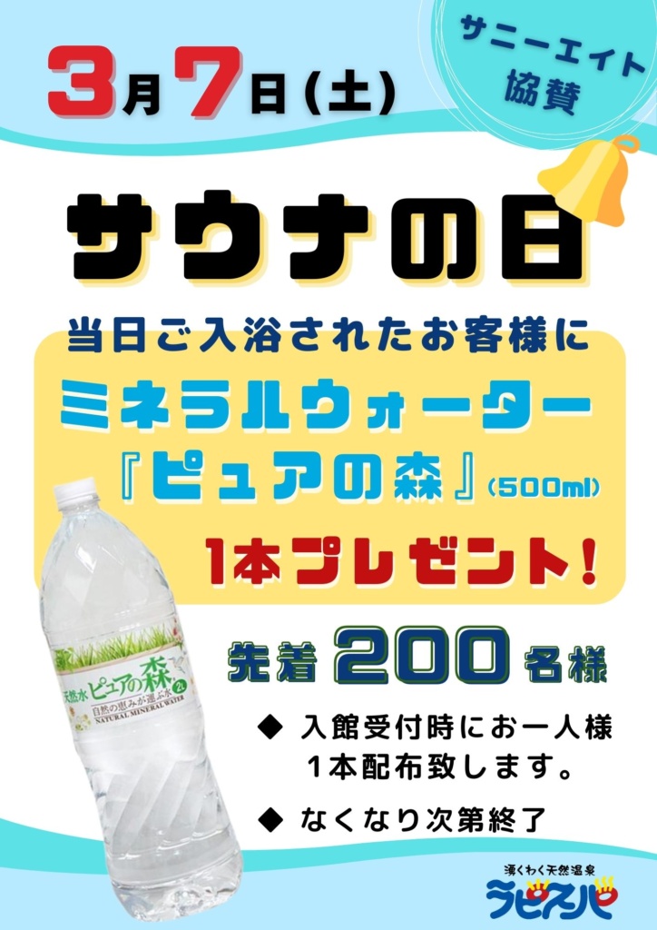 ※ご入浴の方のみ対象、無くなり次第終了となります。